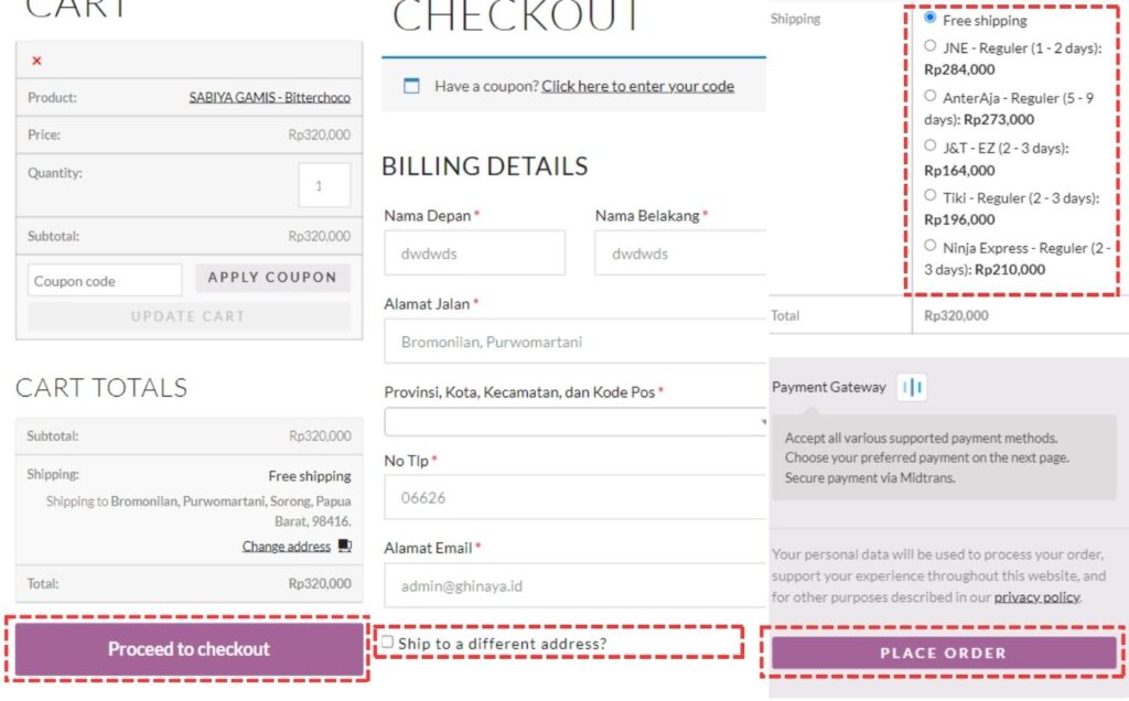 : Jika kami ingin mengirim ke alamat yang berbeda